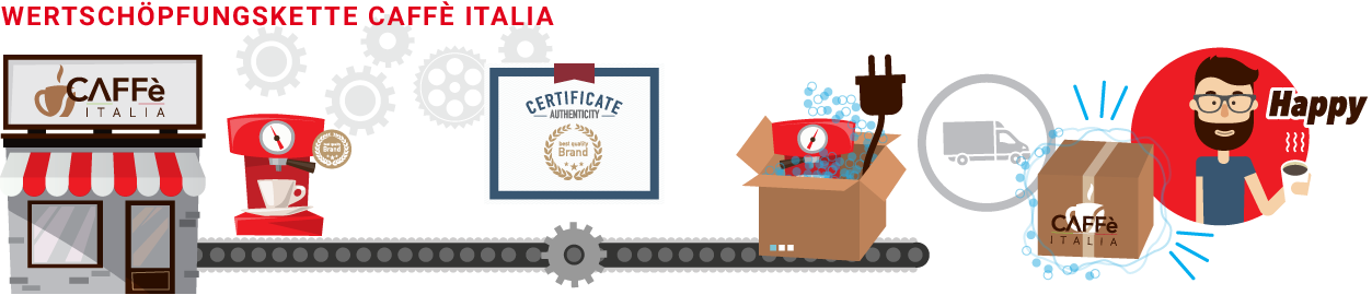 Caffè Italia ist ein führendes Unternehmen des Online-Verkaufs von Kaffeemaschinen, das von den besten Herstellern des Bereichs geschätzt und als Vertriebspartner autorisiert wurde, beispielsweise von Gaggia, Saeco, La Pavoni, Jura, Elektra, Rancilio, Quick Mill und den Herstellern für Küchenbedarf wie KitchenAid, Nemox, Joko und Tamagnini.