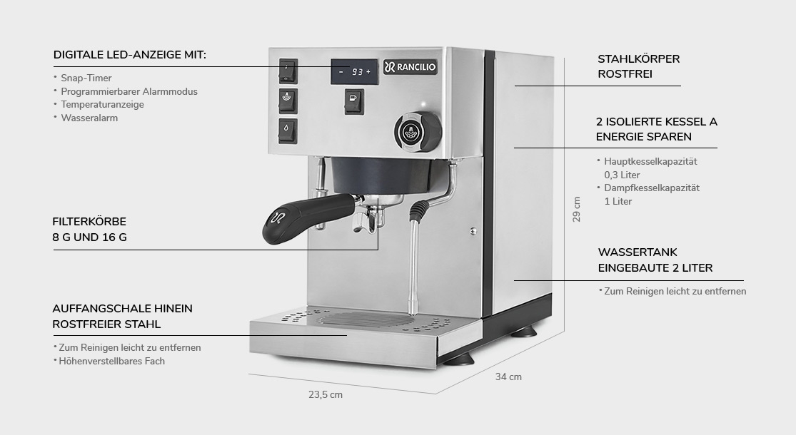 Rancilio Silvia ist das Ikonenmodell von Rancilio’s Home Line. Mehr als zwanzig Jahre nach Silvias Debüt präsentiert Rancilio Silvia Pro, die neue Espressomaschine mit einem einzigen Gruppenkopf , die für zu Hause konzipiert wurde. Der Mythos steht in einem neuen Format mit einer Reihe wichtiger Neuheiten wieder im Rampenlicht.