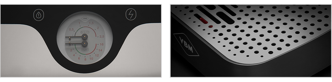 Die Eco-Modus-Funktion ist integriert, um die Temperatur der Maschine in Zeiten der Inaktivität zu senken und erhebliche Energieeinsparungen zu erzielen. Die Bedienknöpfe und der Hebel für die Ausgabe sind ergonomisch geformt, um eine präzisere Abgabe von Wasser und Dampf zu gewährleisten und der Maschine ein markantes Design zu verleihen. Thermosiphon-Zirkulationsgruppe aus verchromtem Messing mit mechanischer Vorinfusionskammer, erhältlich in der manuellen (Hebel-) und elektronischen Version. Filterdurchmesser: 58 mm.