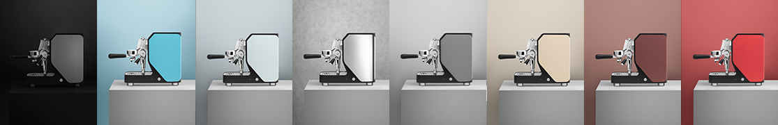 Passen Sie Ihre Domobar an: Mit unserer Farbpalette können Sie Ihre Maschine an jede Umgebung anpassen. Und wenn es Zeit für eine Änderung ist, können Sie Ihrer Maschine ein neues Aussehen verleihen: Die Seitenwände sind mit Magneten befestigt, sodass sie jederzeit leicht entfernt und durch eine andere Farbe ersetzt werden können.